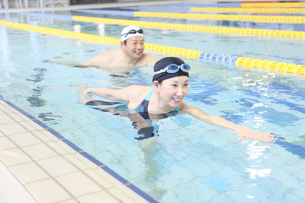 水の浮力により体重や重力による負荷を軽減することができます。足首や膝に故障のある方、腰痛の方などでも安心して運動を楽しめます。