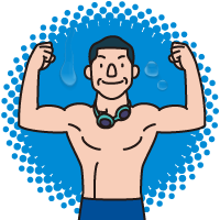 水の抵抗がダンベル替り!水中では体を動かすスピードや角度等で簡単に負荷を調節できるため、体力に合わせて全身を無理なく鍛えられます。